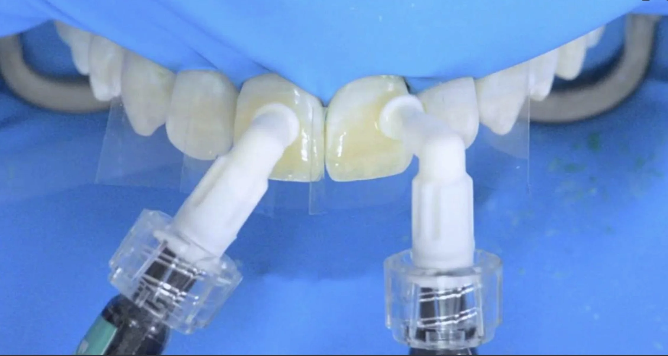 This whitening treatment is carried out in the surgery. It is used to remove the appearance of white spots on anterior teeth. It is very gentle and avoids unnecessary removal of tooth tissue.